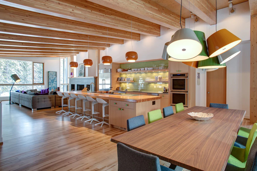 This Scandinavian-style chalet is a ski lover’s paradise. Ski-in or ski-out; it was truly made for a skiing group getaway. When you get in from a day on the slopes use the built-in boot and glove dryers to dry off your gear before warming up in the in-home sauna, hot tub or outdoors by the fire pit.