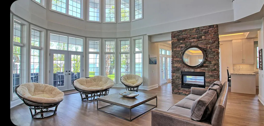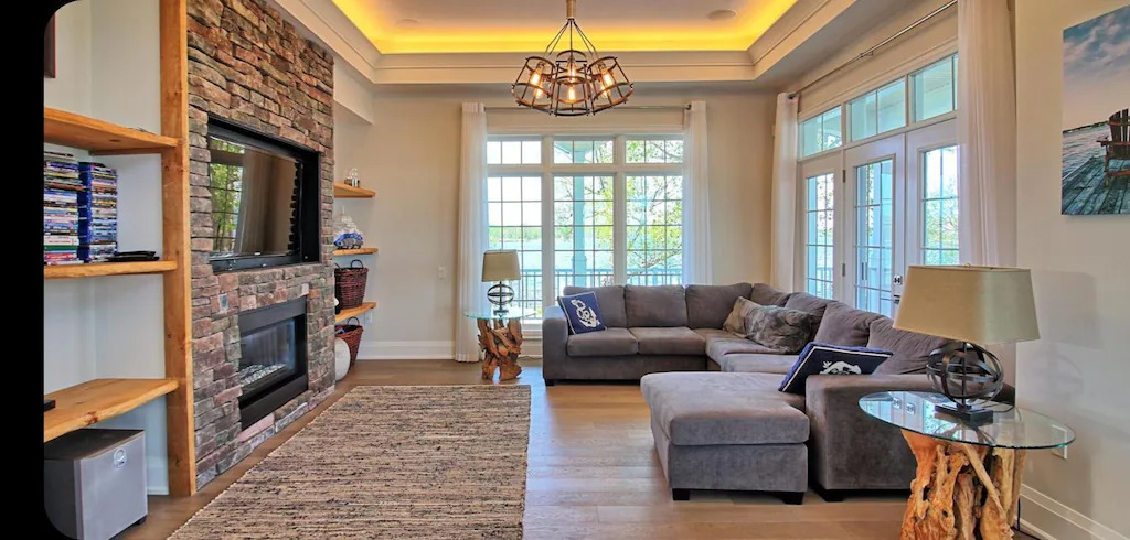 This family-friendly chalet is well-suited for the outdoor adventurer. Close by there are hiking, snowboarding, and snowmobiling trails, and not to mention a stellar view of the St. Lawrence River.
