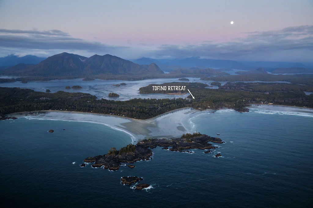 This waterfront luxury retreat is a surfer’s oasis, sandwiched between two of Tofino’s best surfing spots—Chesterman Beach and Cox Bay. This beach house boasts three bedrooms, three bathrooms, an outdoor shower, radiant heated floors and ocean views from every room.