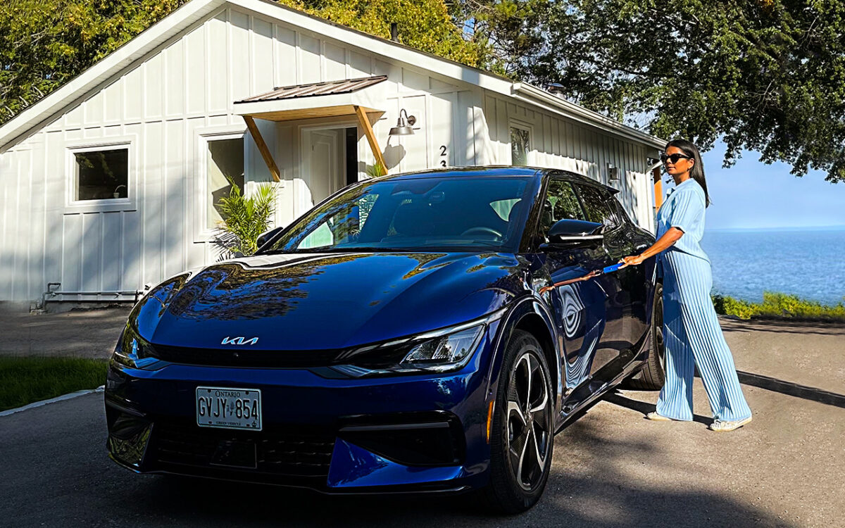 To showcase its capability, Kia Ambassador Anupa King, also known as @denupzter, and her family recently hit the road to beautiful Ontario cottage country to see how the EV6 fares on long routes. With up to 499km* of fully electric range, fast charging capabilities, and a spacious and comfortable interior, the EV6 makes zero-emissions road trips in Canada a convenient, eco-friendly experience. We followed their journey, paying close attention to the following five reasons why the EV6 is the perfect vehicle to get you to the cottage.