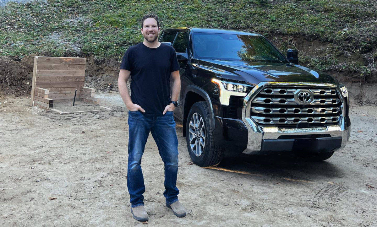 For this project, he incorporated a backstop to keep errant horseshoes from flying too far—a key feature when you have a four-year-old wandering around the pitch. And of course, there had to be a drink holder for when it was someone’s turn to toss. More features meant having more building material and tools on hand, and that’s where the Tundra’s fibre-reinforced composite bed came in handy. Not only does the ultra-durable material resist rust, dents, and scratches, but it has built-in conveniences like integrated LED lighting and a 400W power inverter to keep projects humming along no matter how far off the grid you go. “I loved having access to the outlet for plugging in my tools and charging batteries right there where I needed them,” Adam says. “It’s so convenient to be able to work out of the back of the truck.”